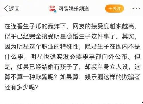 娱乐圈的婚姻状况也是一大看点。圈内人士爆料,很多明星的婚姻并不像表面上那么幸福。有的明星为了事业,选择隐婚或者分居;有的则因为性格不合,最终走向离婚。而那些看似恩爱的夫妻,背后也可能藏着不少秘密。